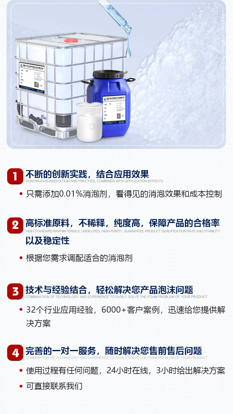 • 技術(shù)與經(jīng)驗(yàn)結(jié)合,輕松解決您產(chǎn)品泡沫問(wèn)題